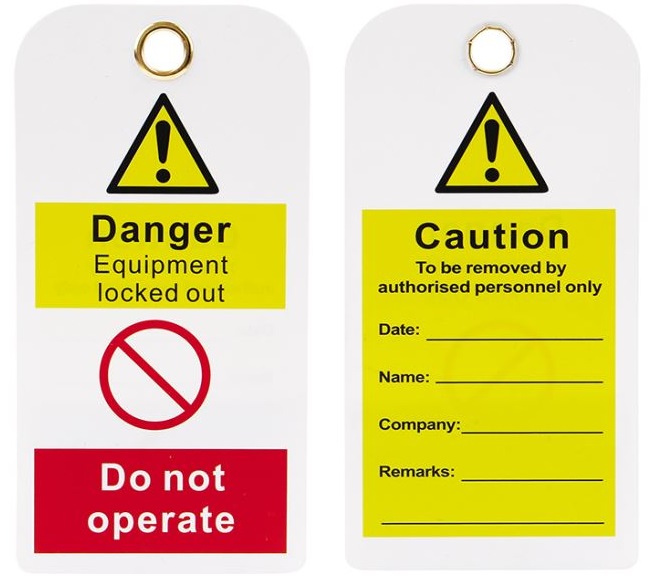 • b) Etiketi, kilitleme ekipmanı yerleştirmekten kimin sorumlu olduğunu ve cihazı çıkarmaya veya üzerinde değişiklik yapmaya yetkili olduğunu gösterir.