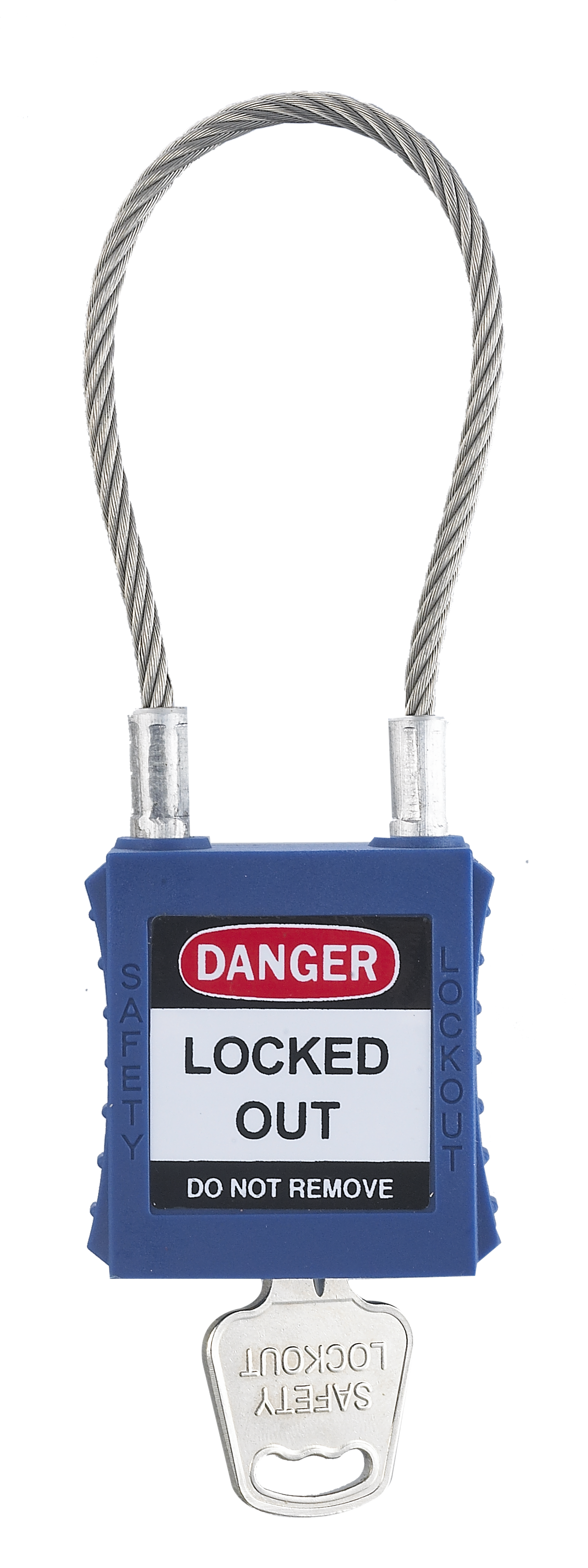 Plastik Gövde Çelik Kablo Emniyet Asma Kilit - Mavi
